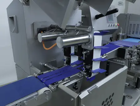 The Paper Interleaver PI355 is the optimal accessory for the VEMAG FM250 Forming Machine, the ASV811 Cutting Device and the BF255 Burger Former. Due to the compact design, the forming line is only slightly extended.